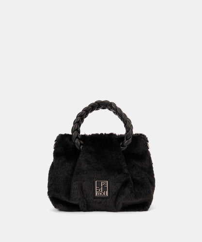 Pepe MOLL - Black Faux Fur Evening Bag with Detachable Crossbody Strap - 252471