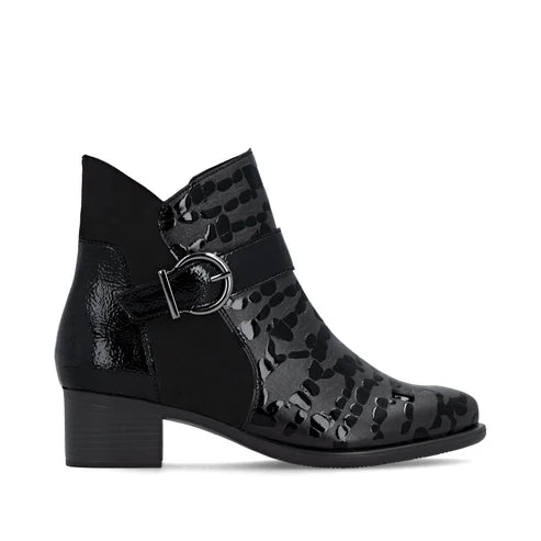 Remonte Ladies Black Patent Print Heel Boot - R5188 02