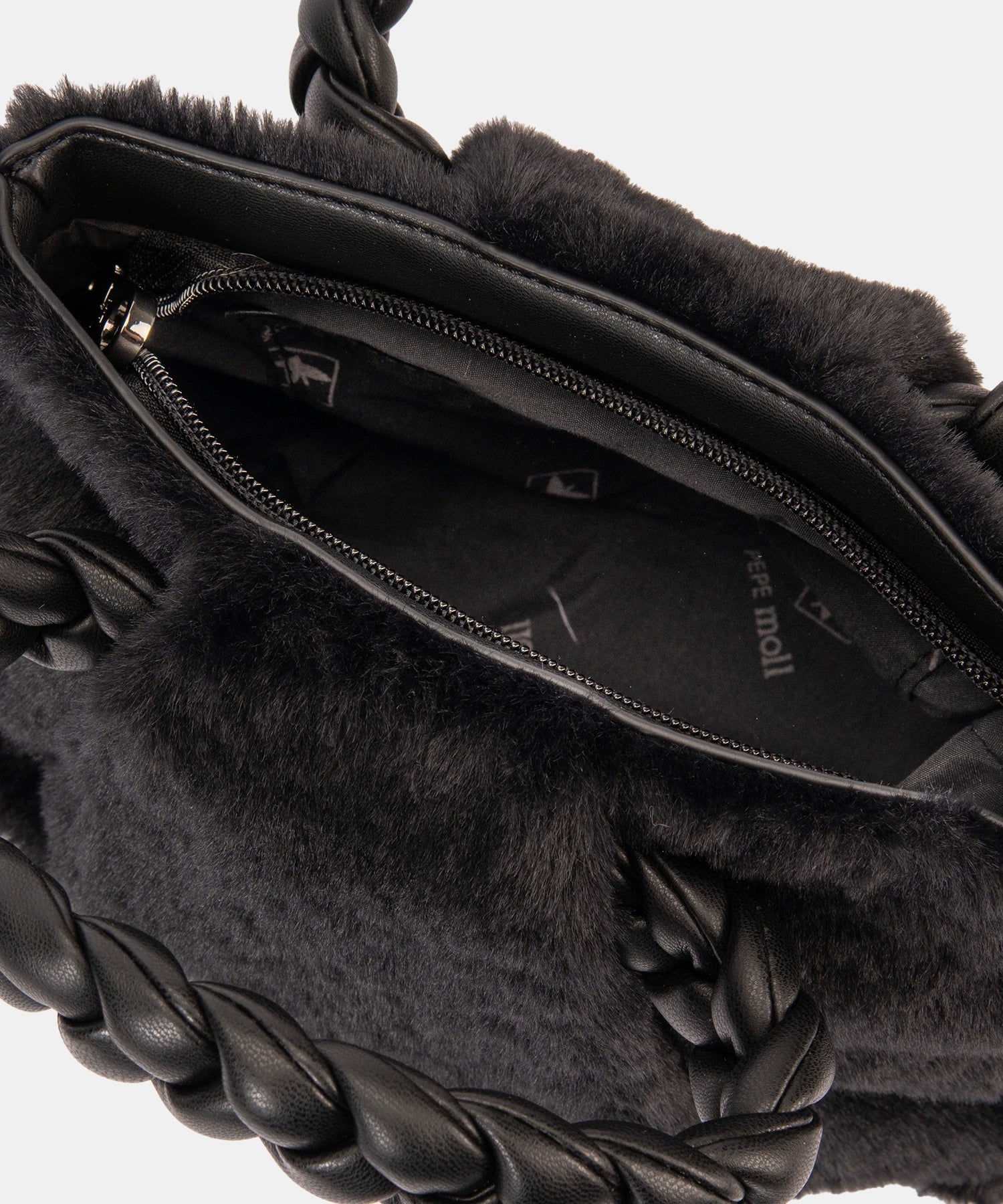 Pepe MOLL - Black Faux Fur Evening Bag with Detachable Crossbody Strap - 252471