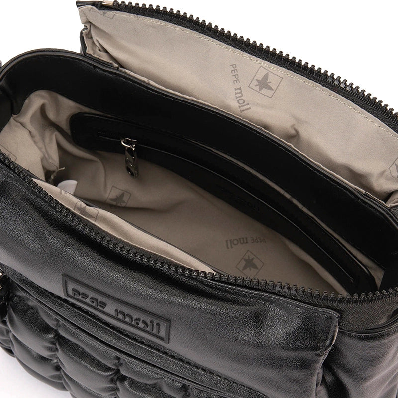 Pepe MOLL Black Quilted Crossbody Bag - Zip Fastening - 252122